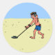 Pegatina Redonda Hombre Metalizado Detectando En La Playa