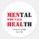 Un PEGATINA motivacional que promueve la salud mental de los hombres y los hombres motivadores para hablar. El diseño muestra las palabras SALUD MENTAL combinadas con HOMBRES QUE HABLAN SALUD. Hay un versículo de guiones del marcador de posición de Eclesiastes, que es PERSONALIZABLE, de modo que puede personalizar con su nombre, organización o texto de su elección. Parte de la colección MENTAL HEALTH. También disponible en blanco con tipografía negra y roja.