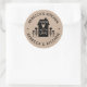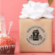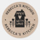 Un pegatina personalizado de 3 pulgadas "hecho con amor" que presenta una linda casita con un corazón y las palabras, hechas con amor en un fondo color kraft. Personalízalo añadiendo tu propio nombre. Un toque de bonito para todos tus regalos caseros. Diseñado para ti por Blackberry Boulevard.