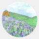 Pegatina Redonda Honey Bees Lavender Field Mountain Meadow