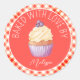 Pegatina Redonda Horneado Con Amor Cupcakes Rojos Jugados Personali
