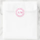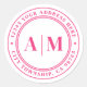 This round sticker now uses hot pink for all text and the small circular accents, giving the design a fun, bold twist while keeping its clean layout. Your initials sit in the center with the address curved neatly around the edge, framed by the updated hot pink circle details. Still simple and versatile, it works for personal or professional use, and you can customize the fonts, wording, or colors anytime.