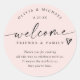 Moderno Boda rosa Rubor Bienvenidos Hotel Bag Classic Round Pegatina Rubor Pink Hotel Bag Pegatinas: Bienvenidos a los seres queridos con estilo con estos pegatinas de bolsos de hotel de escritura moderna rosa, diseñados para un aspecto romántico y minimalista. El diseño redondo de 3 pulgadas dice "bienvenidos amigos y familiares" con acento cardíaco y espacio para tu mensaje, nombres y fecha. El suave fondo de color negro acompañado de letras de escritura modernas añade un encanto suave y contemporáneo, ideal para pegatinas de bolsos de hotel boda, sellos de regalo de bienvenida o etiquetas de cajas de agradecimiento que muestran un sincero aprecio.