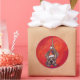 Pegatina Redonda Hound Dog Navidades En Rojo