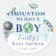 Adorable invitación a una ducha de bebé con astronauta, barcos de cohetes, Tierra y estrellas ambientadas en un fondo azul oscuro. Invitamos a nuestros chicos lindos a ver de vuelta a una estrella de tiro coordinadora. Visite nuestra tienda para toda nuestra línea, incluyendo rifas de pañales y tarjetas de reserva.