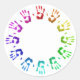 Pegatina de parachoques con Huellas coloridas de manos humanas en círculo. Puede agregar texto dentro