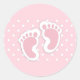Pegatina Redonda Huellas de niñas pequeñas de color rosa