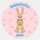 Pegatina Redonda Huevos coloridos de conejo de pascua personalizado