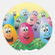 Pegatina Redonda Huevos de Pascua con rostros en hierba