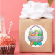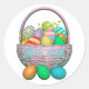 Pegatina Redonda Huevos de Pascua pintados en la canasta