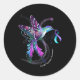 Pegatina Redonda Hummingbird Púrpura Cinta Suicida Consciente