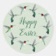 pegatina "Happy Easter" de bonito con colibríes gavillados de rubí sobre un fondo verde claro.