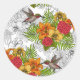 Pegatina Redonda Hummingbirds y el ramo tropical
