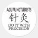 "¡Los acupuntores lo hacen con precisión" es el diseño divertido perfecto para el experto en acupuntura! Con el símbolo chino para la acupuntura. Añade tu propio texto, elige tus colores de fondo. ¡Que los empleados lo usen alrededor de la oficina, que lo pongan en tarjetas para cremallera, tarjetas de visita o postales para sus remitentes! No olvide personalizar de las combinaciones de colores y las fuentes.