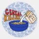 Pegatina Redonda Humor de alimentos para el desayuno asesino de cer