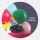 Pegatina Redonda Humor de perros de cumpleaños feliz con globos