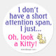 "No tengo una corta atención, solo... ¡Oh, mira a un Kitty!" Divertido dicho acerca de estar distraído y olvidadizo con un lindo gatito gráfico. Texto / fuente en morado y rosa. —