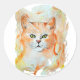 Pegatina Redonda Humor mágico rojo gato acuarela místico