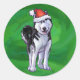 Pegatina Redonda Husky festivo en Santa Hat en Green