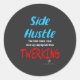 Bailar la última moda de baile, el ajetreo lateral, ayuda a adolescentes y adultos a ganar dinero ¡por encima de sus ingresos! Además, a diferencia de twerking, ¡el primer grupo NO SERÁ enviado a la oficina principal de suspensiones porque es TAN apropiado para la edad! La frase en estos pegatinas redondos negros, "ajetreo lateral", está en texto azul neón.