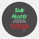 Bailar la última moda de baile, el ajetreo lateral, ayuda a adolescentes y adultos a ganar dinero ¡por encima de sus ingresos! Además, a diferencia de twerking, ¡el primer grupo NO SERÁ enviado a la oficina principal de suspensiones porque es TAN apropiado para la edad! La frase en estos pegatinas redondos negros, "ajetreo lateral", está en un texto verde neón.
