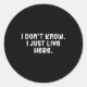 Pegatina Redonda I Don't Know I Just Live Here, Sarcasm Joke Sarcas