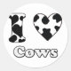Ik hou van koeien stickers. Tekst: I love cows Hart met een koeien print