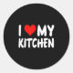 Pegatina Redonda I Love Kitchen - Heart - Funny Cute Cook Remodel C