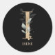 Letra I monograma floral. Letra I en textura marrón dorada acentuada con hojas de compuestos de acuarela verde, flores y salpicaduras de oro fundidas. Personalizado con el nombre en el tipo de letra coincidente.