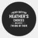 Pegatina Redonda I Never Question Heather's Choices Because I'm One