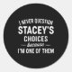 Pegatina Redonda I Never Question Stacey's Choices Because I'm One