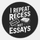 Pegatina Redonda I Repeat Recess Recess Not Essays