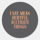 Pegatina Redonda I Say Mean Hurtful Accurate Things