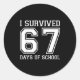 Pegatina Redonda I Survived 67 Days Of School Funny 67 Teachers Stu