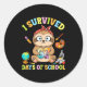Pegatina Redonda I Survived Six Seven Days Of School Cute Sloth Stu