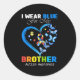 Pegatina Redonda I Wear Blue For My Brother Autism Awareness Heart
