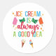 Pegatinas de la Ronda Social del Helado. El helado es siempre una buena idea. Invite a sus amigos o vecinos para una divertida noche de helado.