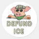 Defund ICE muestra a un funcionario de inmigración y Personalizados de EE. UU. usando gorras, sombras y máscaras con las palabras "Defund ICE" debajo. Cualquier parecido con un cerdo es completamente casual.