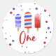 Pegatina Redonda Ice Pops One Red White Blue Primer Cumpleaños