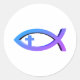 Pegatina Redonda Ichthus | Símbolo cristiano de pescado con clase c