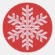 Pegatina Redonda Icy White Snowflake sobre Navidades rojos cálidos