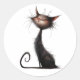 Un gato negro caprichoso y de aspecto espumoso con una expresión orgullosa y manchada. Su piel es descuidada y sabia, con delicados rizos al borde de las orejas y la cola, lo que le confiere un encanto travieso pero encantador. Los ojos del gato están cerrados, y lleva una sonrisa contenta, casi engreída, que sugiere confianza y alegría. Los rasgos exagerados, incluyendo su largo y delgado cuello y su cabeza sobredimensionada, añaden al atractivo peculiar y estilizado de la obra de arte.