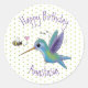 Pegatina Redonda Ilustracion de colibrí y personalizado de abejas
