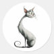 Pegatina Redonda Ilustracion de gato de cuello largo blanco caprich