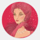 Pegatina Redonda Ilustracion de moda elegante mujer con perlas