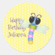 Pegatina Redonda Ilustracion de personalizado de libélula azul y ro