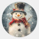 Pegatina Redonda Ilustracion de Snowman con ráticas copas de nieve