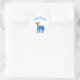 Cuenta con una ilustración adorable de una cabra marrón vestida con pijamas azules ilustrados con lunas amarillas brillantes. Esta pegatina está lista para ser personalizada con un nombre u otro texto.