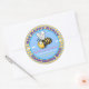 Pegatina Redonda Ilustracion personalizado azul de abeja dulce
