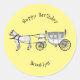 Pegatina Redonda ilustracion personalizado de caballos y carruajes